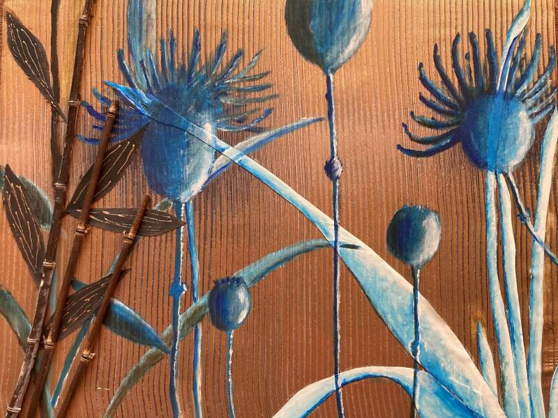 Bloemen; 40 x 50 cm, acryl op textiel